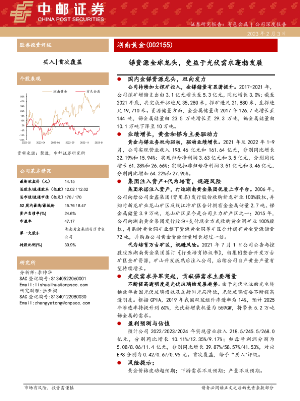【中邮证券】【20230204】湖南黄金-002155.SZ-锑资源全球龙头,受益于光伏需求蓬勃发展-20页 行业研究