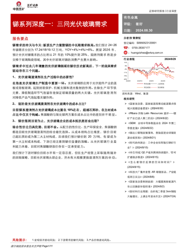 【五矿证券】【20240830】锑系列深度一:三问光伏玻璃需求-11页 行业研究