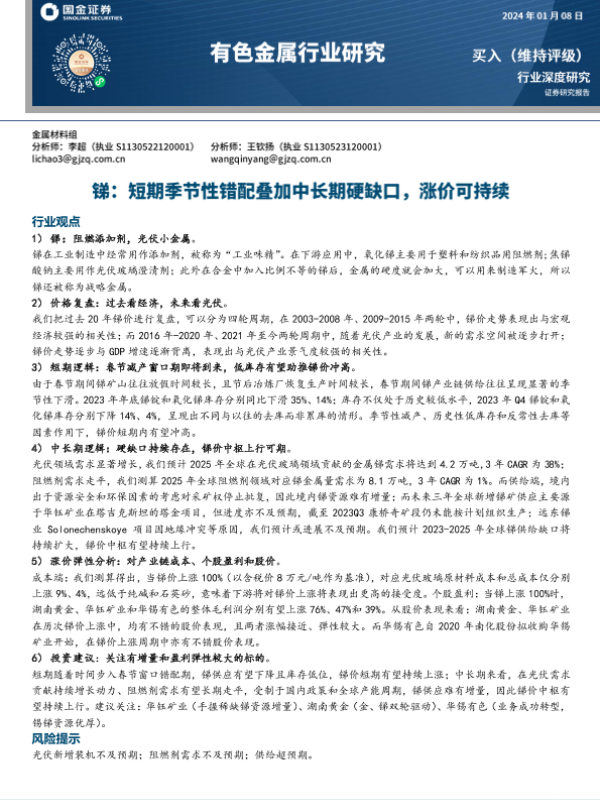【国金证券】【20240108】有色金属行业研究:锑:短期季节性错配叠加中长期硬缺口,涨价可持续-24页 行业研究