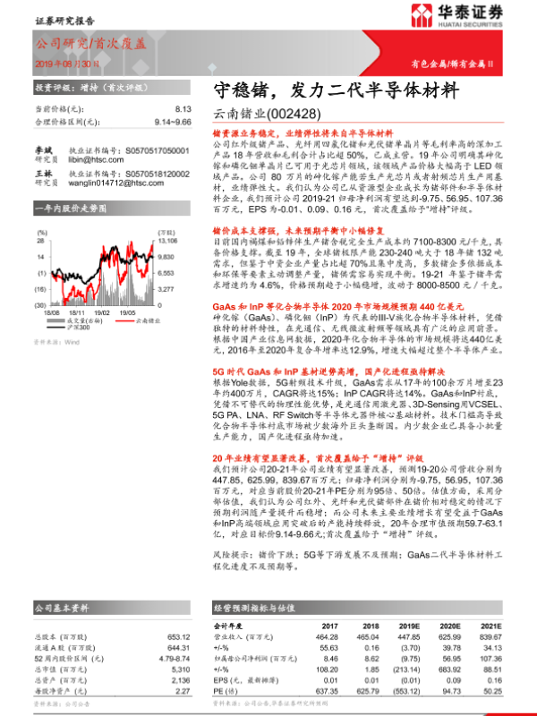 【华泰证券】【20190830】守稳锗,发力二代半导体材料-25页 行业研究