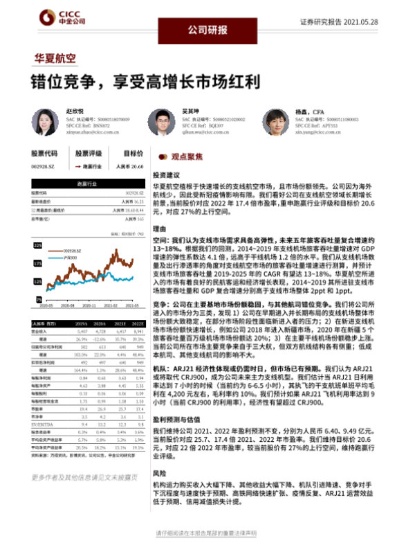【中金公司】【20210528】华夏航空 - 错位竞争,享受高增长市场红利-33页 行业研究