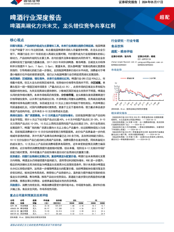 【国信证券】【20240517】2024-05-18-啤酒行业深度报告-啤酒高端化方兴未艾-龙头错位竞争共享红利-26页 行业研究