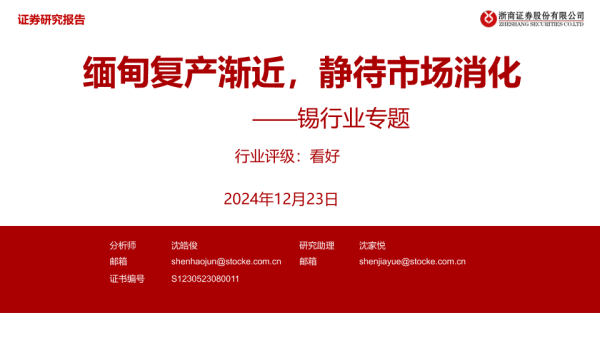【浙商证券】【20241223】20241223-浙商证券-锡行业专题:缅甸复产渐近,静待市场消化-11页 行业研究