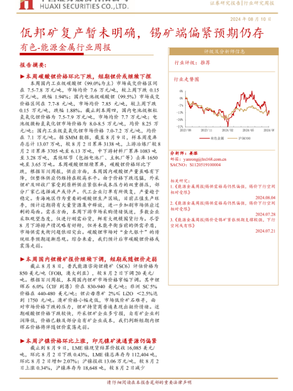 【华西证券】【20240810】佤邦矿复产暂未明确,锡矿端偏紧预期仍存-35页 行业研究