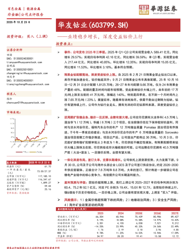 【华源证券】【2025】业绩稳步增长,深度受益钴价上行-3页 证券期货研究报告