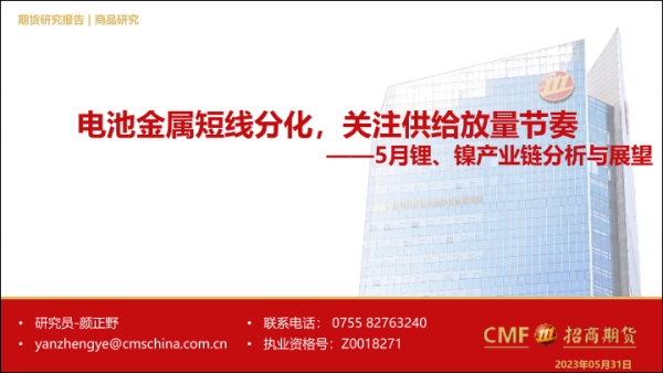 【招商期货】【20230531】5月锂、镍产业链分析与展望:电池金属短线分化,关注供给放量节奏-23页 行业研究