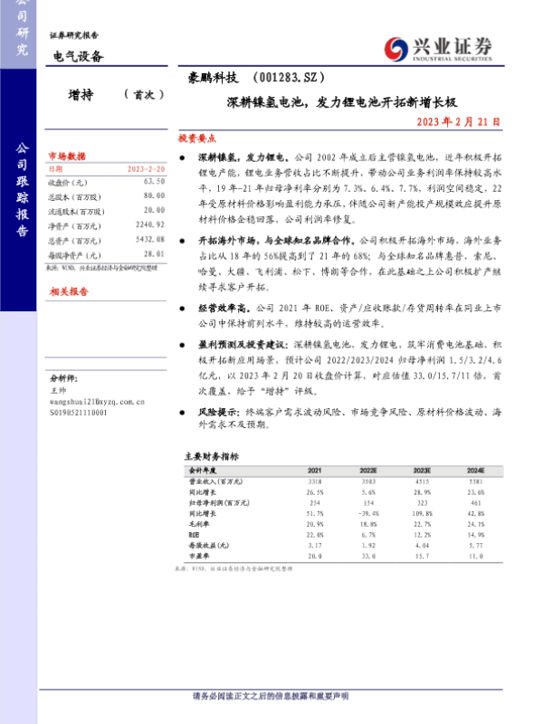 【兴业证券】【20230221】深耕镍氢电池,发力锂电池开拓新增长极-22页 行业研究