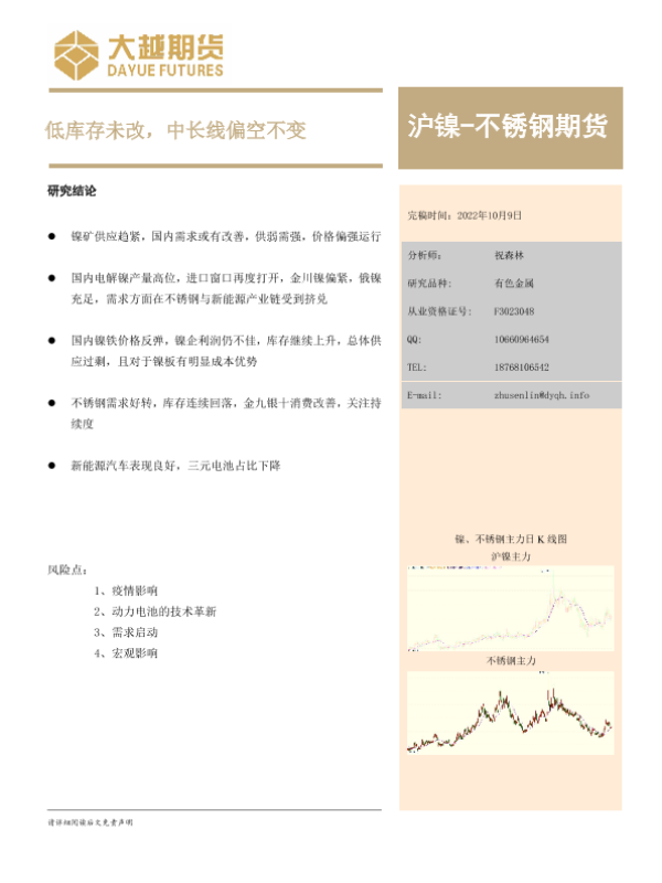 【大越期货】【20221009】沪镍_不锈钢期货月度报告:低库存未改,中长线偏空不变-17页 行业研究