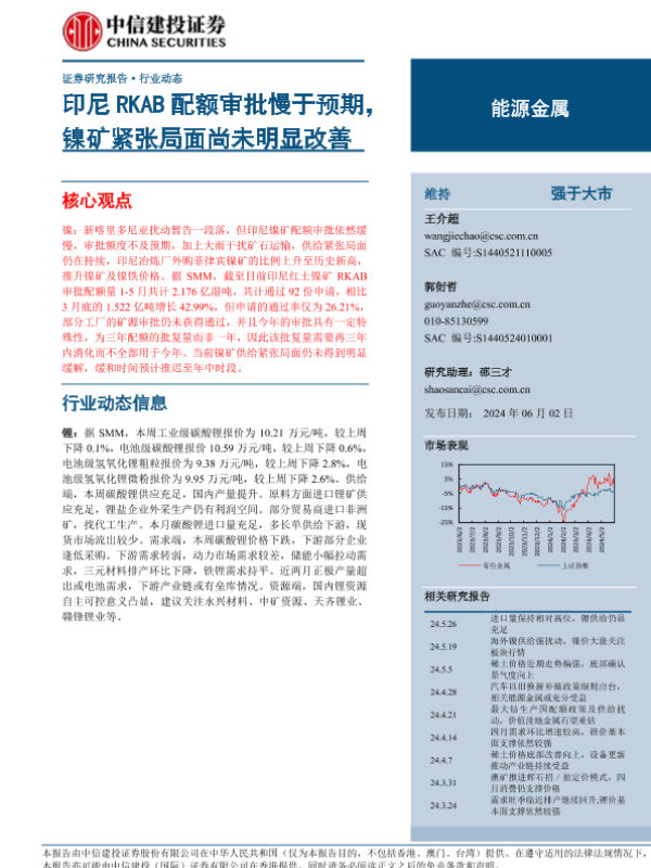 【中信建投证券】【20240602】能源金属行业:印尼RKAB配额审批慢于预期,镍矿紧张局面尚未明显改善-12页 行业研究