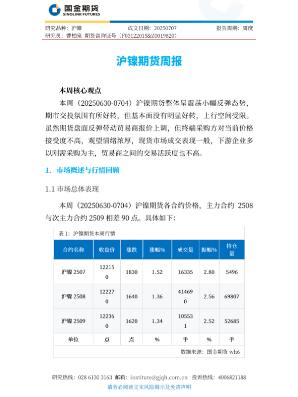 【国金期货】【20250707】沪镍期货周报-4页 证券期货研究报告
