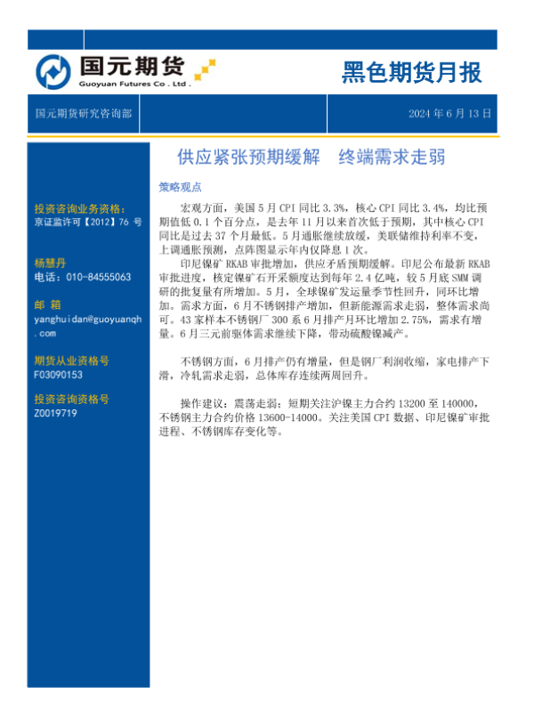 【国元期货】【20240613】黑色期货月报_供应紧张预期缓解_终端需求走弱-12页 行业研究