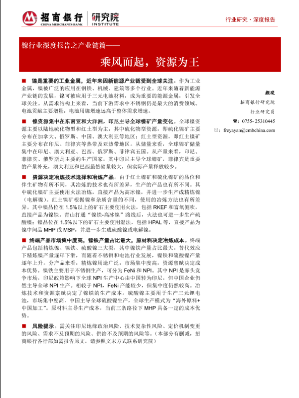 【招商银行】【20230728】镍行业深度报告之产业链篇:乘风而起,资源为王-37页 行业研究