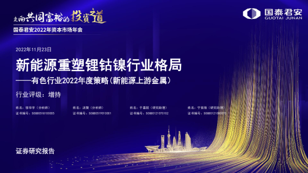 【国泰君安证券】【20211123】有色行业2022年度策略(新能源上游金属):新能源重塑锂钴镍行业格局-29页 行业研究