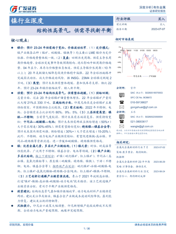 【广发证券】【20230707】镍行业深度:结构性高景气,供需寻找新平衡-30页 行业研究