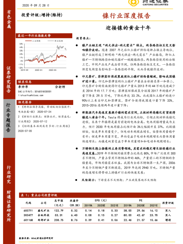 【财通证券】【20200928】20200928-财通证券-镍行业深度报告:迎接镍的黄金十年-40页 行业研究