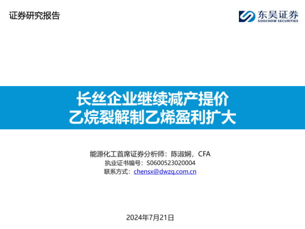 【东吴证券】【20240721】能源化工行业:长丝企业继续减产提价,乙烷裂解制乙烯盈利扩大-46页 行业研究