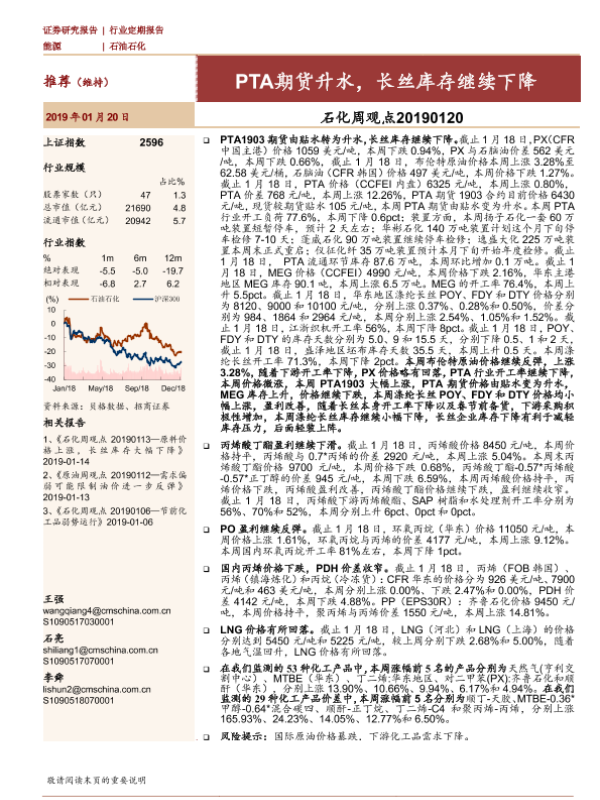 【海通证券】【20190120】石化周观点:PTA期货升水,长丝库存继续下降-18页 证券期货研究报告
