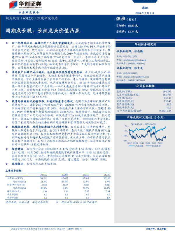 【华创证券】【20200701】20200701-华创证券-桐昆股份-601233.SH-深度研究报告:周期成长股,长丝龙头价值凸显-20页 行业研究