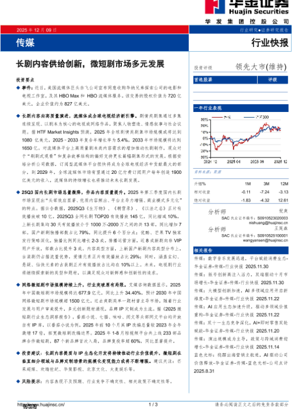 【华金证券】【202512】传媒_长剧内容供给创新_微短剧市场多元发展-3页 证券期货研究报告