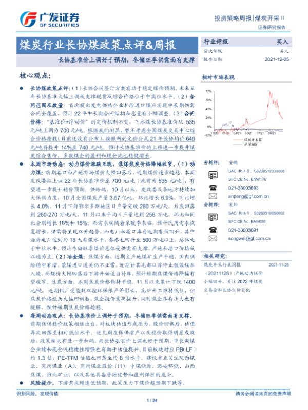【广发证券】【20211205】20211205-广发证券-煤炭行业长协煤政策点评&周报:长协基准价上调好于预期,冬储旺季供需面有支撑-24页 行业研究
