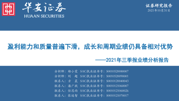 【华安证券】【20211031】2021年三季报业绩分析报告:专题盈利能力和质量普遍下滑,成长和周期业绩仍具备相对优势-30页 行业研究
