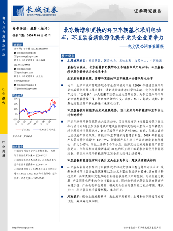 【长城证券】【20200802】北京新增和更换的环卫车辆基本采用电动车,环卫装备新能源化提升龙头企业竞争力-11页 行业研究
