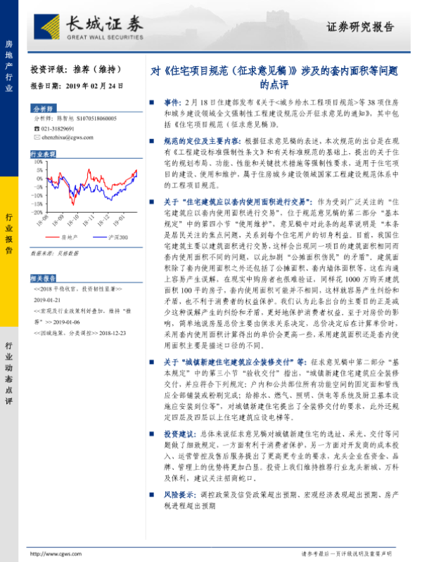 【长城证券】【20190224】对《住宅项目规范(征求意见稿)》涉及的套内面积等问题的点评-3页 行业研究