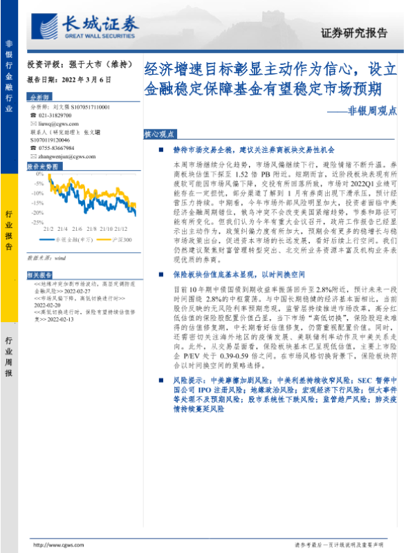 【长城证券】【20220306】经济增速目标彰显主动作为信心,设立金融稳定保障基金有望稳定市场预期-32页 行业研究
