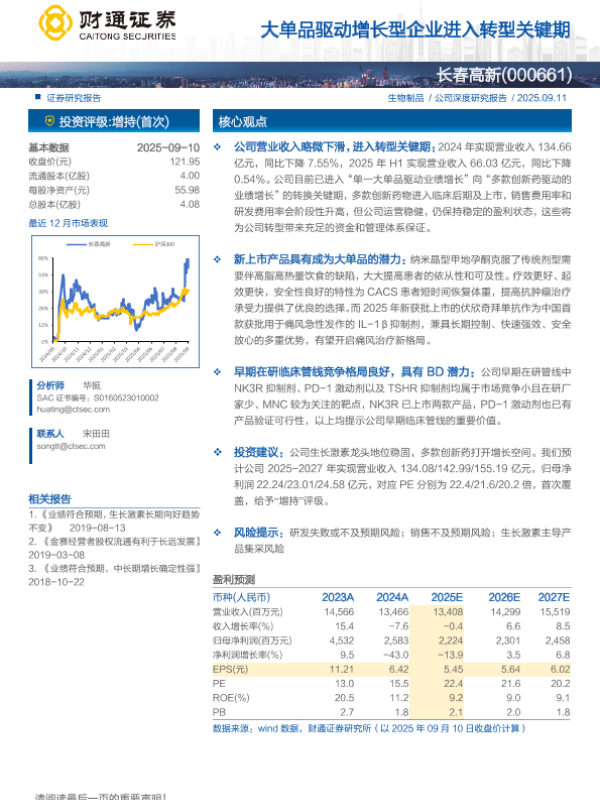 【中泰证券】【20250424】长春高新(000661)转型期业绩阶段性承压期,期待创新管线收获-11页 证券期货研究报告