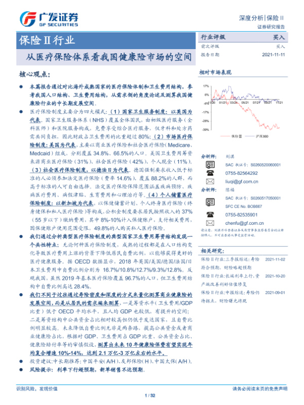 【广发证券】【20211111】保险Ⅱ行业深度分析:从医疗保险体系看我国健康险市场的空间-32页 行业研究