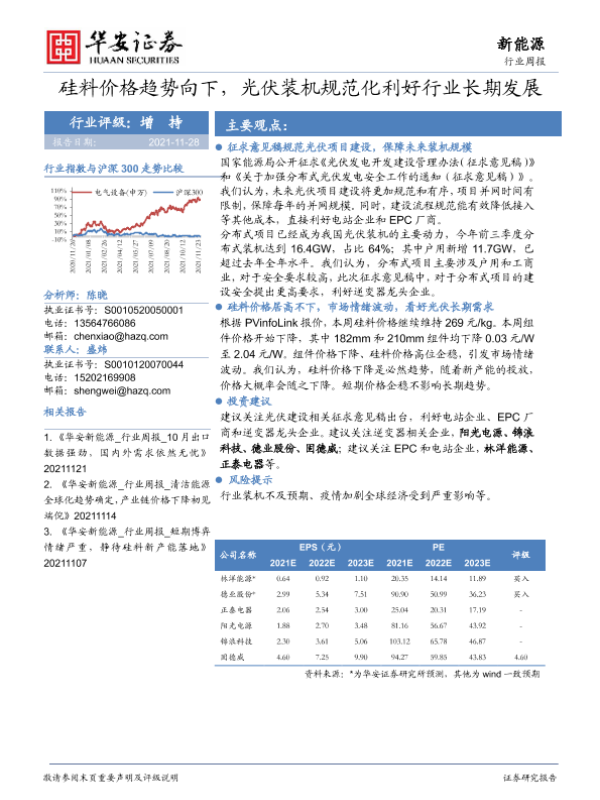 【华安证券】【20211128】硅料价格趋势向下,光伏装机规范化利好行业长期发展-15页 行业研究