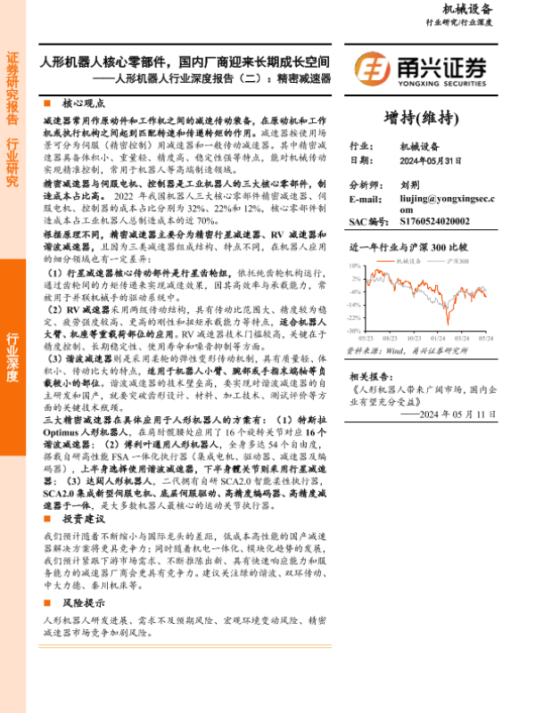 【甬兴证券】【20240603】2024-06-03-人形机器人行业深度报告(二)-精密减速器-人形机器人核心零部件-国内厂商迎来长期成长空间-24页 行业研究