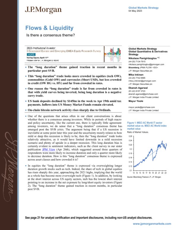 【J.P. Morgan】【20230504】JPMorgan Market Stra-Flows Liquidity Is there a consensus theme?-24页 行业研究