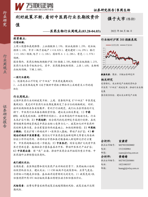 【万联证券】【20220406】利好政策不断,看好中医药行业长期投资价值-9页 行业研究