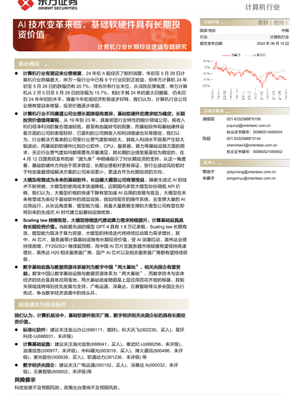 【东方证券】【20240610】20240610-东方证券-计算机行业长期投资逻辑专题研究:AI技术变革来临,基础软硬件具有长期投资价值-19页 行业研究