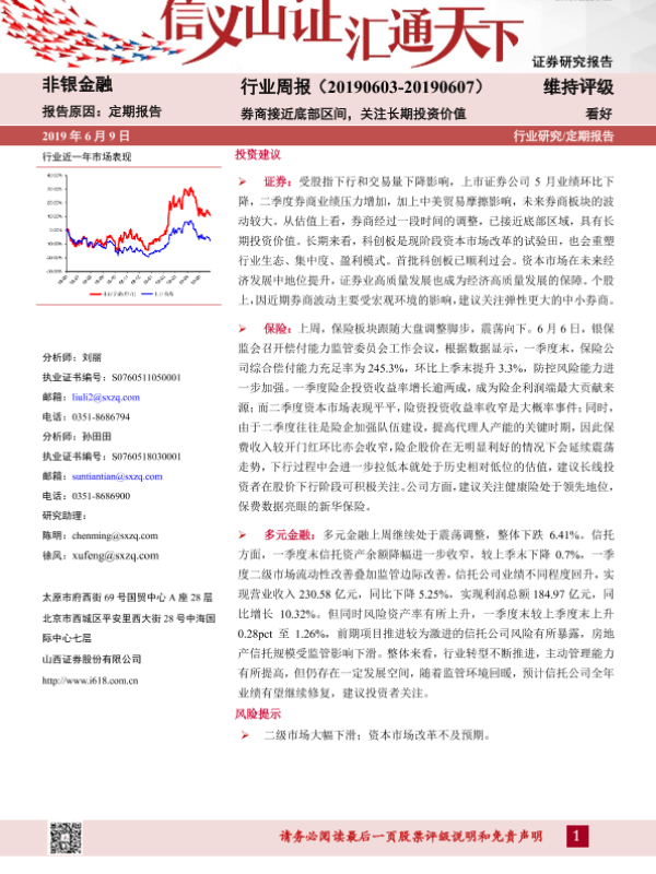【山西证券】【20190609】非银金融行业周报:券商接近底部区间,关注长期投资价值-6页 行业研究