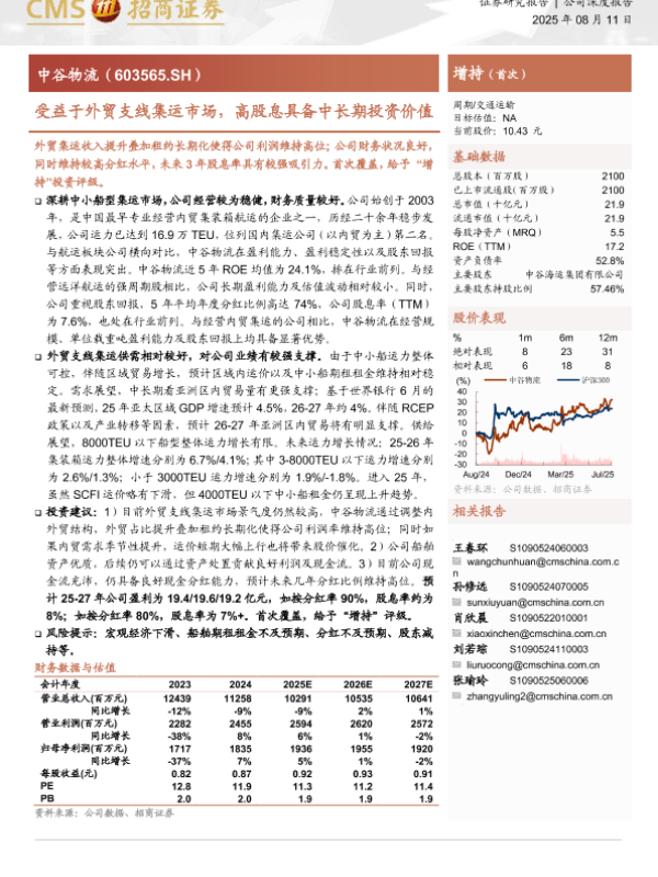 【海通证券】【20250811】中谷物流-受益于外贸支线集运市场,高股息具备中长期投资价值-26页 证券期货研究报告