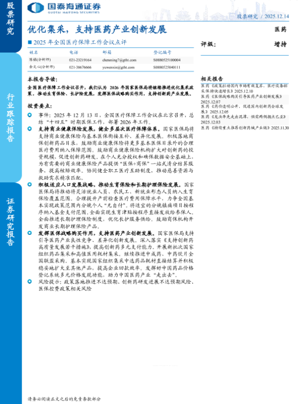 【国泰海通】【202512】优化集采,支持医药产业创新发展-2页 证券期货研究报告