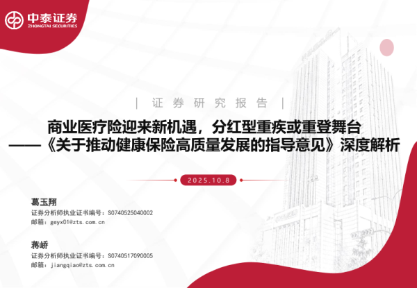【中泰证券】【202510】商业医疗险迎来新机遇,分红型重疾或重登舞台——《关于推动健康保险高质量发展的指导意见》深度解析-23页 证券期货研究报告