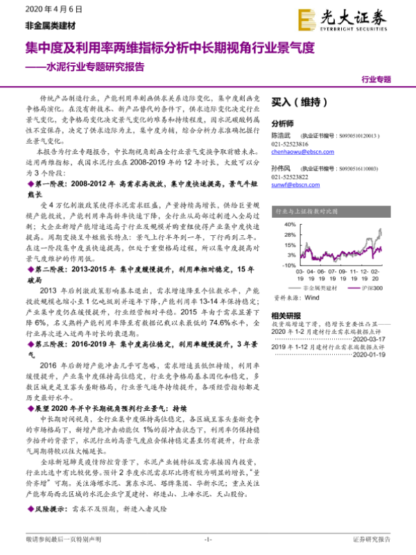 【光大证券】【20200406】水泥行业专题研究报告:集中度及利用率两维指标分析中长期视角行业景气度-10页 行业研究