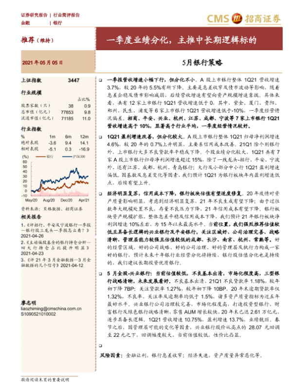 【海通证券】【20210505】5月银行策略:一季度业绩分化,主推中长期逻辑标的-4页 行业研究