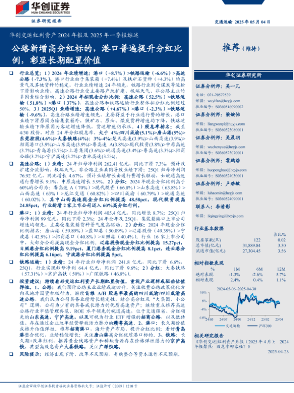 【华创证券】【20250504】交运行业红利资产2024年报及2025年一季报综述-17页 证券期货研究报告
