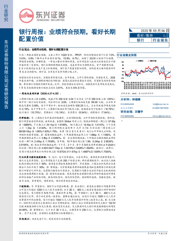 【东兴证券】【20200506】银行周报:业绩符合预期,看好长期配置价值-12页 行业研究