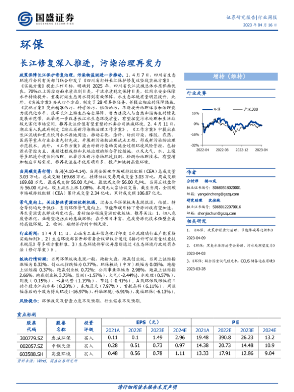 【国盛证券】【20230416】环保行业周报:长江修复深入推进,污染治理再发力-11页 行业研究