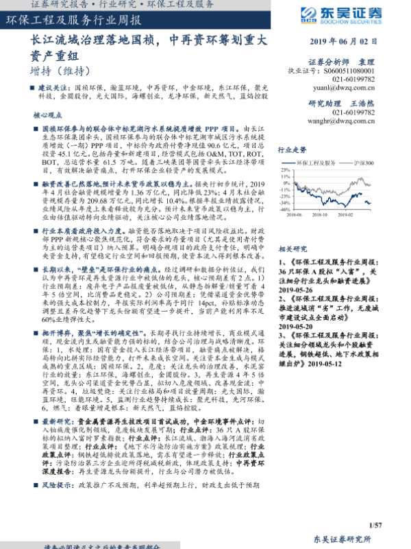 【东吴证券】【20190602】环保工程及服务行业周报:长江流域治理落地国祯,中再资环筹划重大资产重组-57页 行业研究