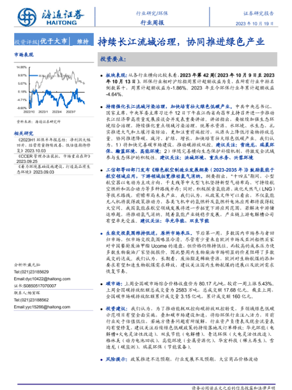 【海通证券】【20231019】环保行业周报:持续长江流域治理,协同推进绿色产业-13页 行业研究