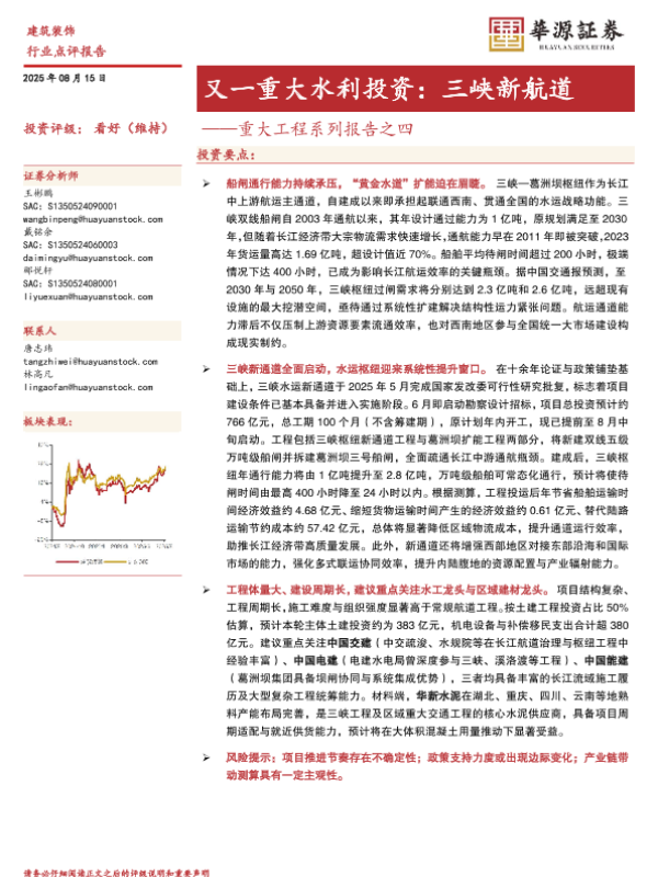 【华源证券】【20250815】又一重大水利投资:三峡新航道-8页 证券期货研究报告