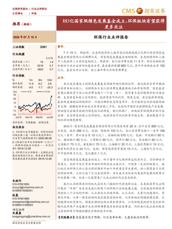 【海通证券】【20200716】环保行业点评报告:885亿国家级绿色发展基金成立,环保板块有望获得更多关注-2页 证券期货研究报告
