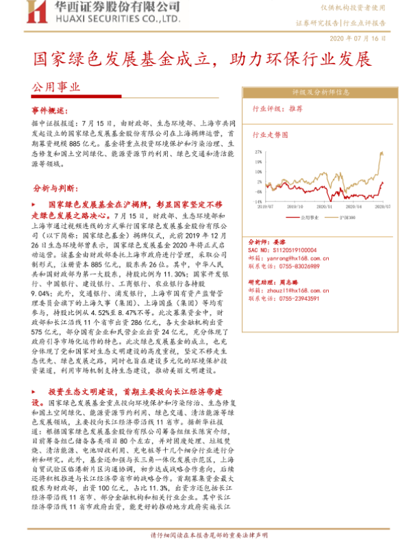 【华西证券】【20200716】国家绿色发展基金成立,助力环保行业发展-4页 行业研究