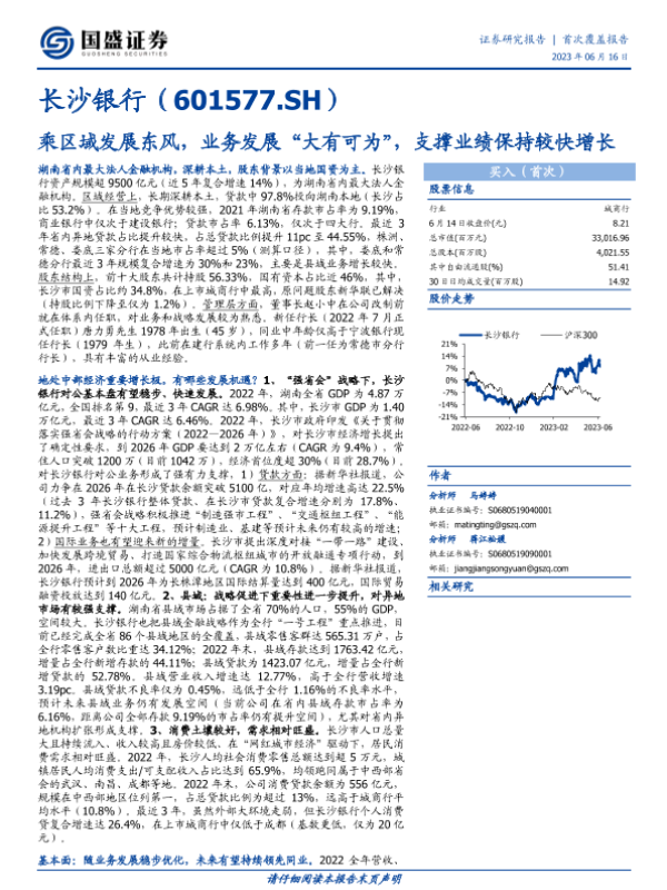 【国盛证券】【20230616】长沙银行-601577.SH-乘区域发展东风,业务发展“大有可为”,支撑业绩保持较快增长-27页 行业研究